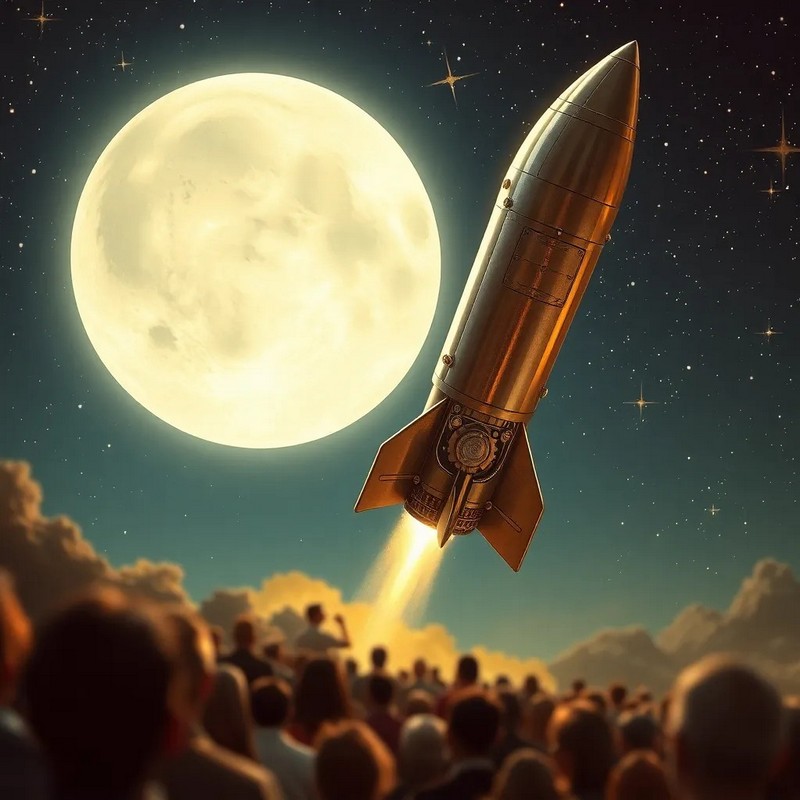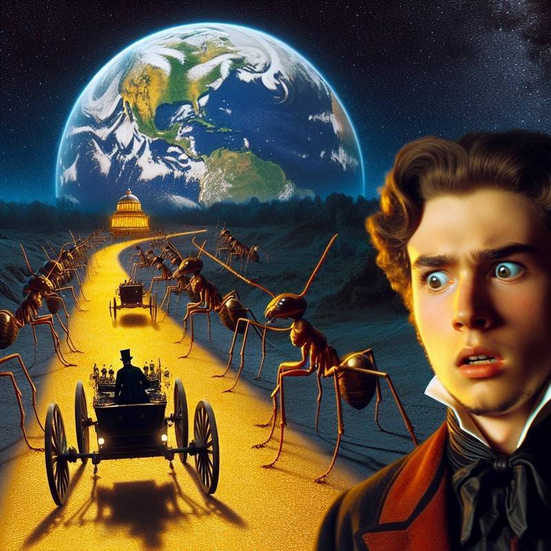 Cette histoire raconte le lancement du premier satellite artificiel, une sphère de 60 mètres de diamètre construite avec 12 millions de briques et pouvant héberger trente-sept habitants.