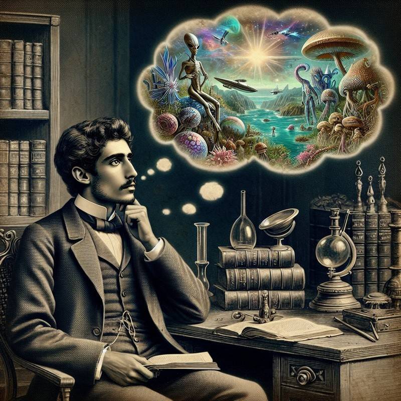 - Ce texte est généralement considéré comme la première édisonade ('uvre de fiction et d'aventure mettant en scène des génies scientifiques).